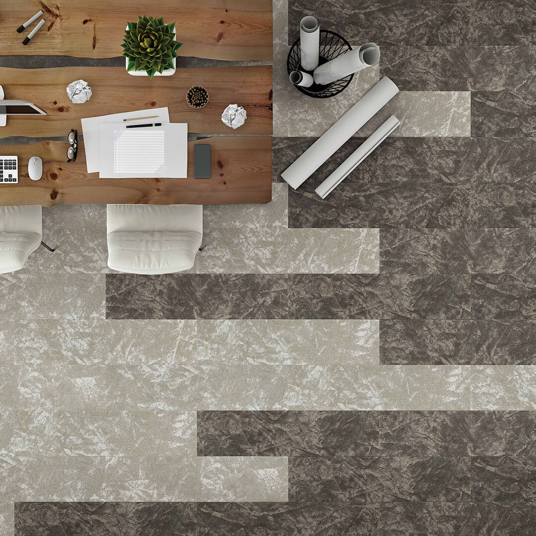 الورق المعجّن (Papier-mâché) هو عمل فني يُصنع من قطع الورق ومعاجينه التي تُلصق معًا باستخدام الغراء أو النشا أو معجون ورق الجدران. ويحوّل تصميم “T850 بيبر ماشِه” هذه الفكرة الفنية إلى تصميم داخلي عبر دمج أنماط مستوحاة من ملمس الورق المجعّد على كل بلاطة سجاد، بحيث يبدو تركيبها في المساحة وكأنه تجميع لعمل فني من الورق المعجّن.