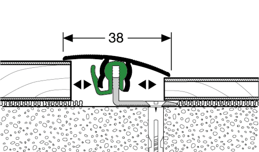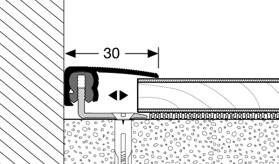 يتكون النظام من ثلاثة أجزاء، وهو مناسب لعمليات الانتقال بين الأرضيات ذات الارتفاع المتساوي ضمن سماكات تتراوح بين 7 إلى 18 مم.