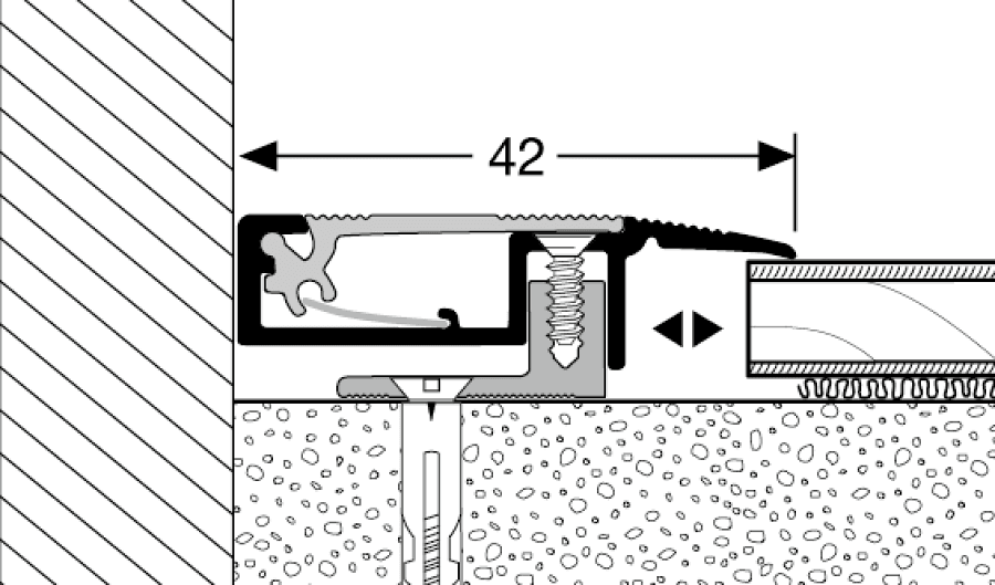 يتوافق النظام مع جميع أنواع الأرضيات الصلبة بسماكات تتراوح بين 7 إلى 16 مم، ويتوفر بألوان الألمنيوم المعتمدة من Küberit® وبأطوال مختلفة تناسب مختلف المشاريع.