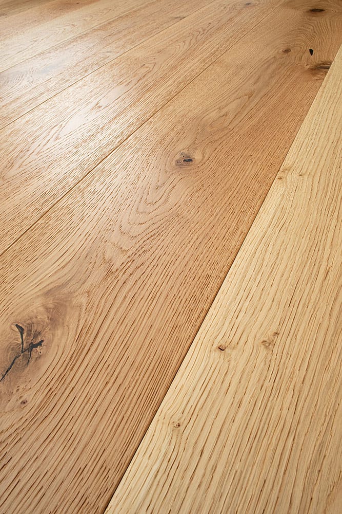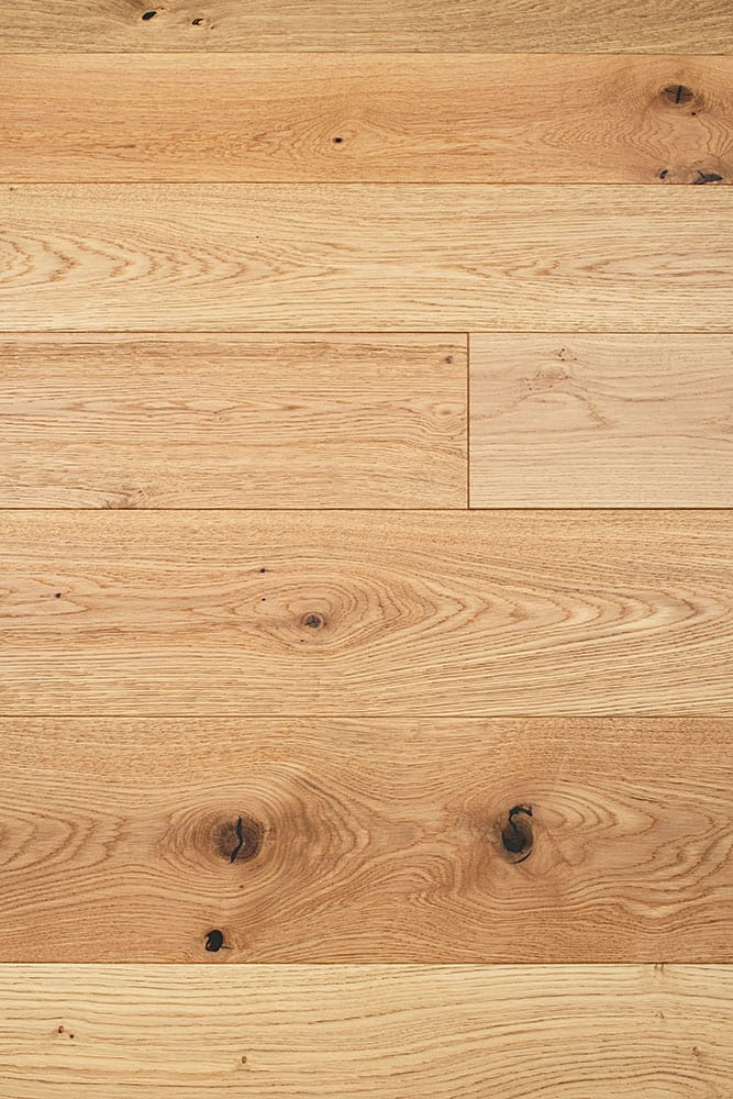 - أرضيات كلاسيكية من لوح واحد بسماكة 12 مم، مع طبقة علوية من خشب البلوط بسماكة تقريبية 3 مم.