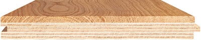 - طبقة علوية من خشب البلوط الأوروبي بسماكة تقريبية 4 مم