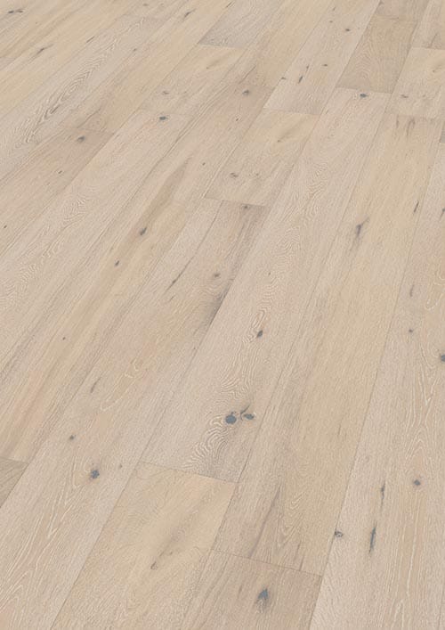 - أرضيات كلاسيكية من لوح واحد بسماكة 14 مم، مع طبقة علوية من خشب البلوط بسماكة تقريبية 3 مم.