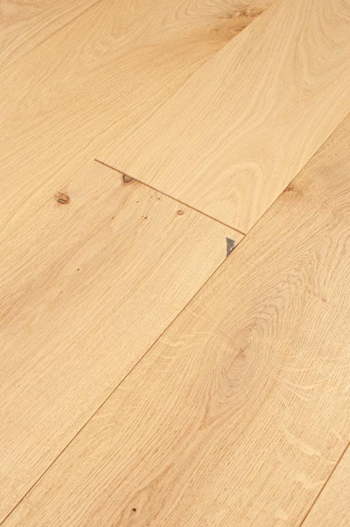 - أرضيات كلاسيكية من لوح واحد بسماكة 14 مم، مع طبقة علوية من خشب البلوط بسماكة تقريبية 3 مم.