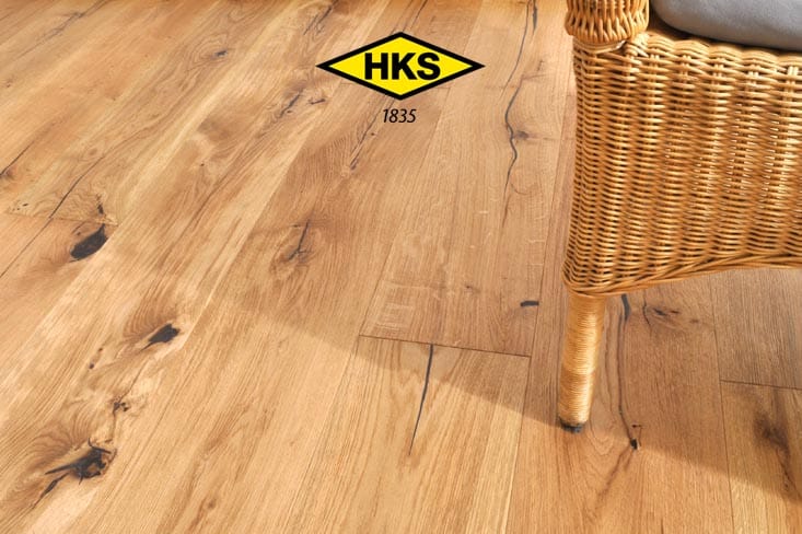- أرضيات كلاسيكية من لوح واحد بسماكة 14 مم، مع طبقة علوية من خشب البلوط بسماكة تقريبية 3 مم.