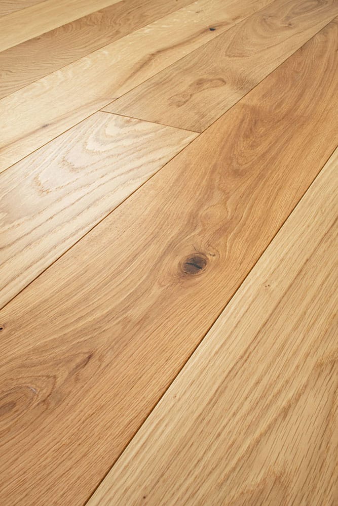 - أرضيات كلاسيكية من لوح واحد بسماكة 12 مم، مع طبقة علوية من خشب البلوط بسماكة تقريبية 3 مم.